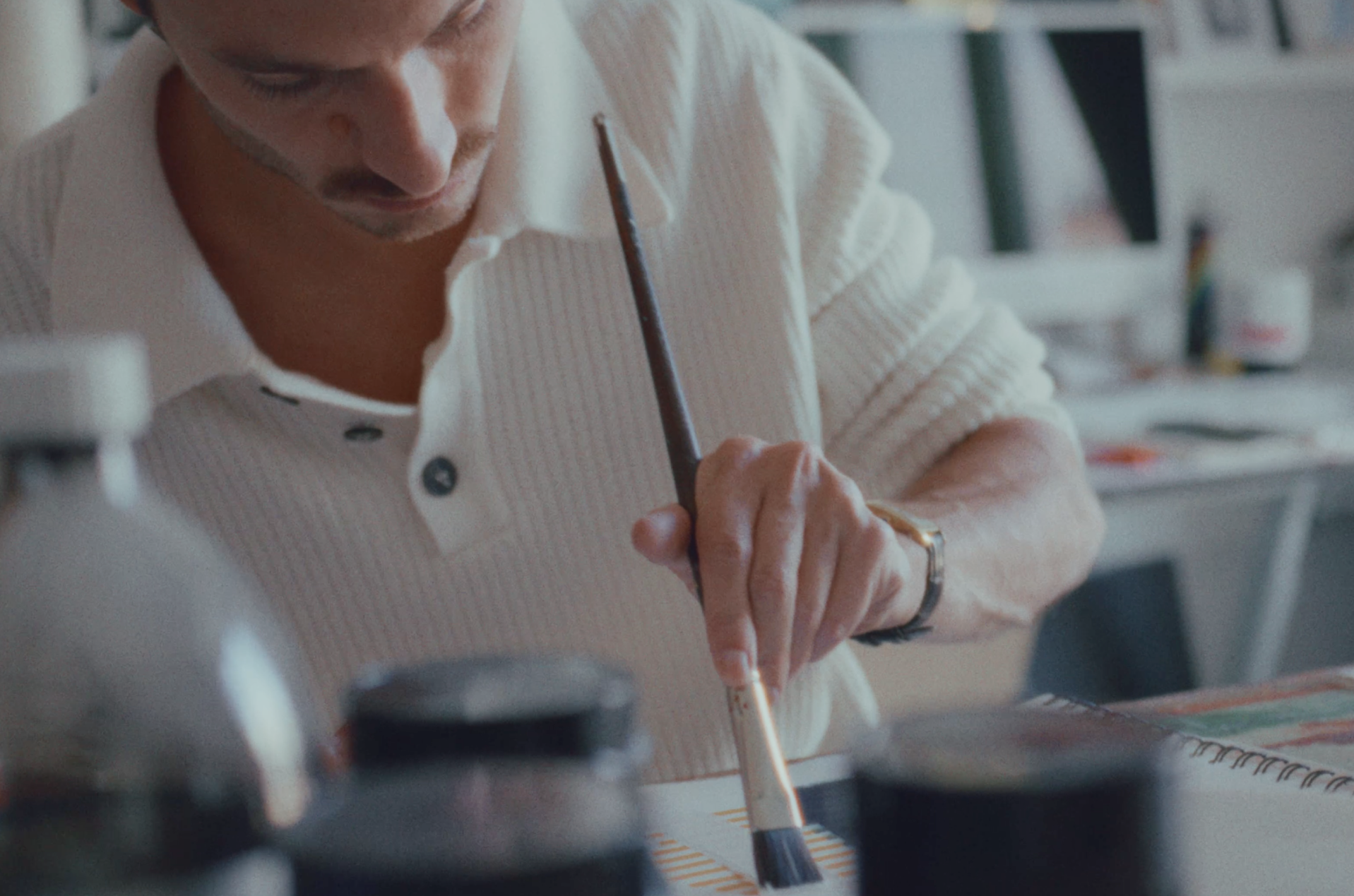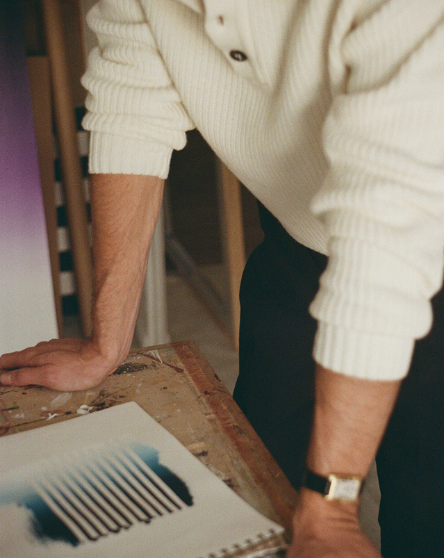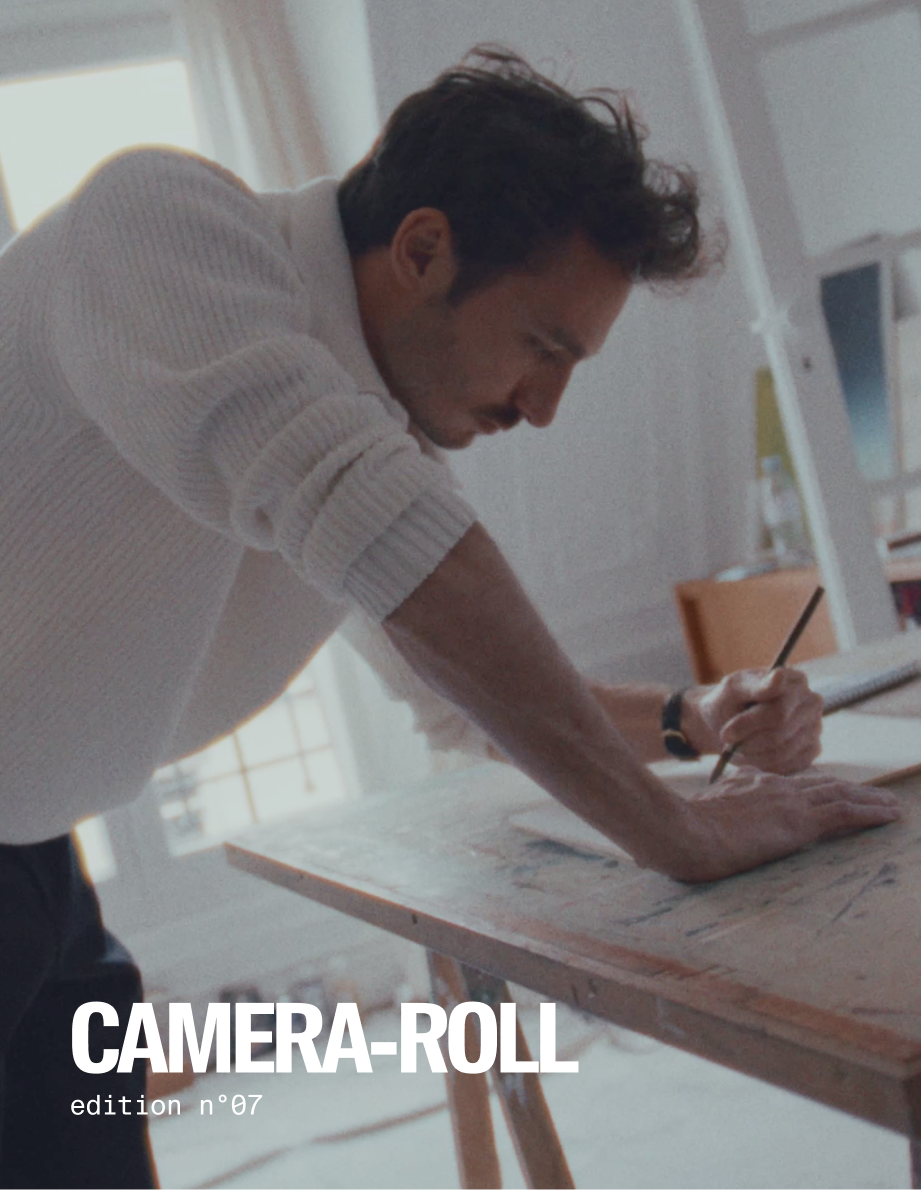For this seventh installment of Camera-Roll, we're heading to the heights of Montmartre to meet Gaultier Rimbault-Joffard. Painter, sculptor, total artist: his works, discovered by chance during our visual wanderings, captivated us... And continue to fascinate. He sculpts paint with custom-made tools, giving life to pieces that are powerfully spatial and sensorial. Gaultier entrusted the imagery to Karl Jürgen Becker, who helms the photography direction. Welcome to his Camera-Roll.